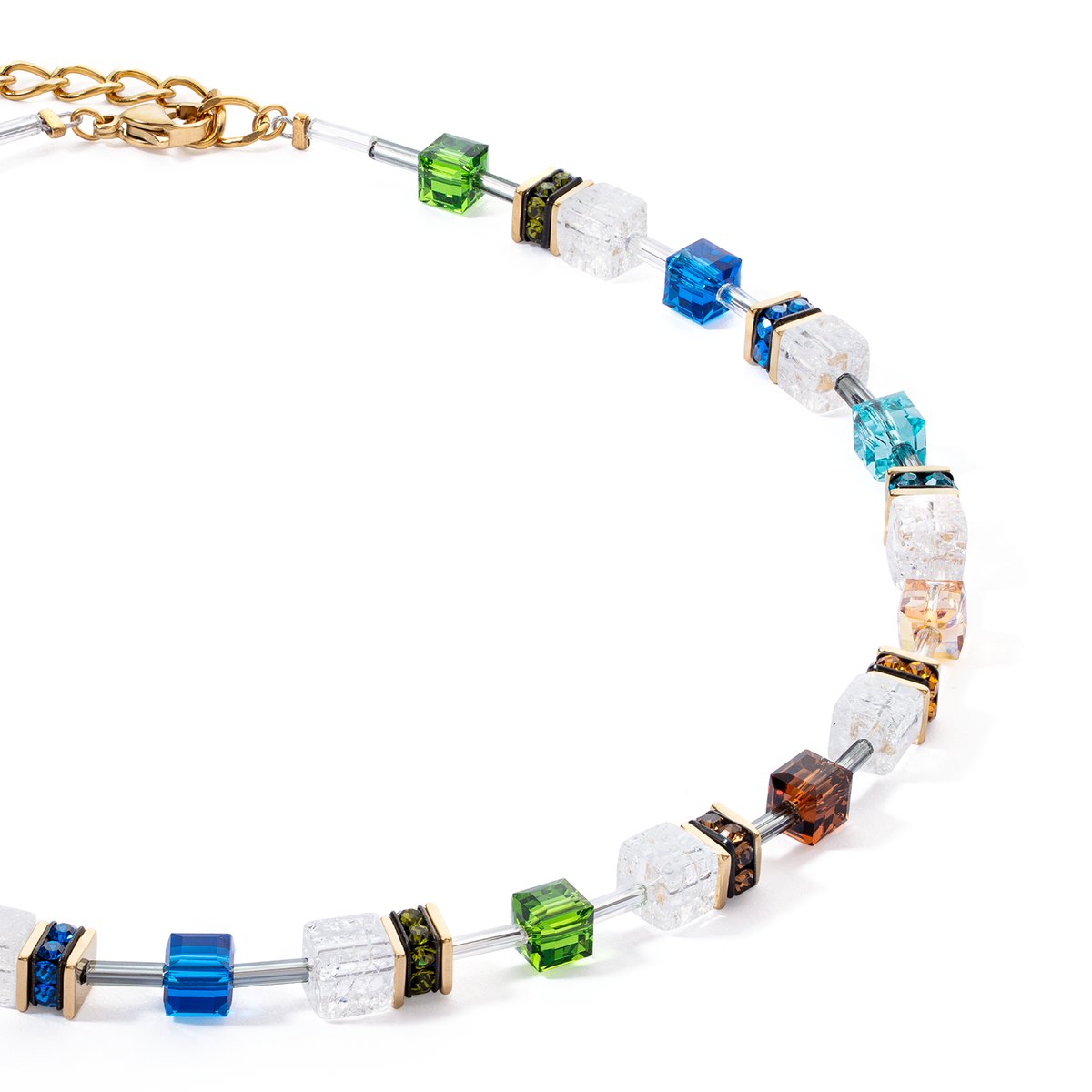 Celebrating the beauty of nature. Water, earth, air. Handcrafted from cracked rock crystal and sparkling Swarovski® crystals, this necklace from the famous GeoCUBE® collection combines soothing rock crystal with elegant multicolour.