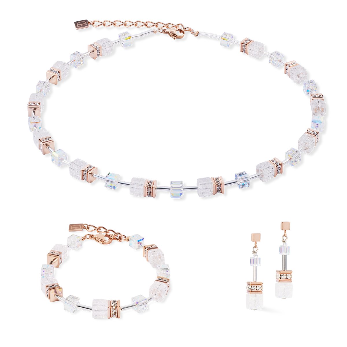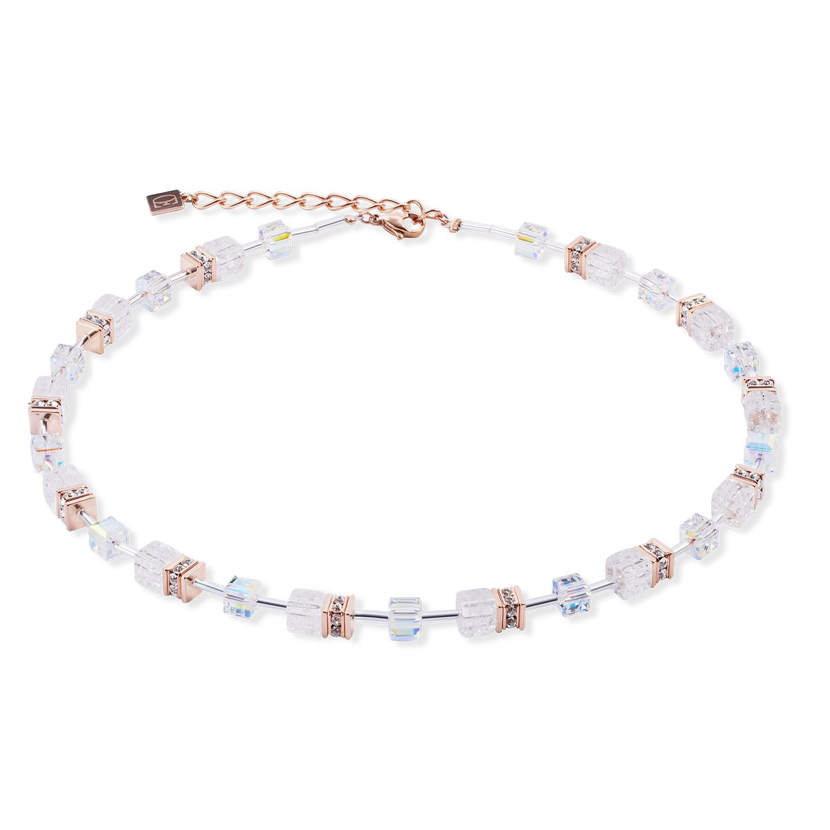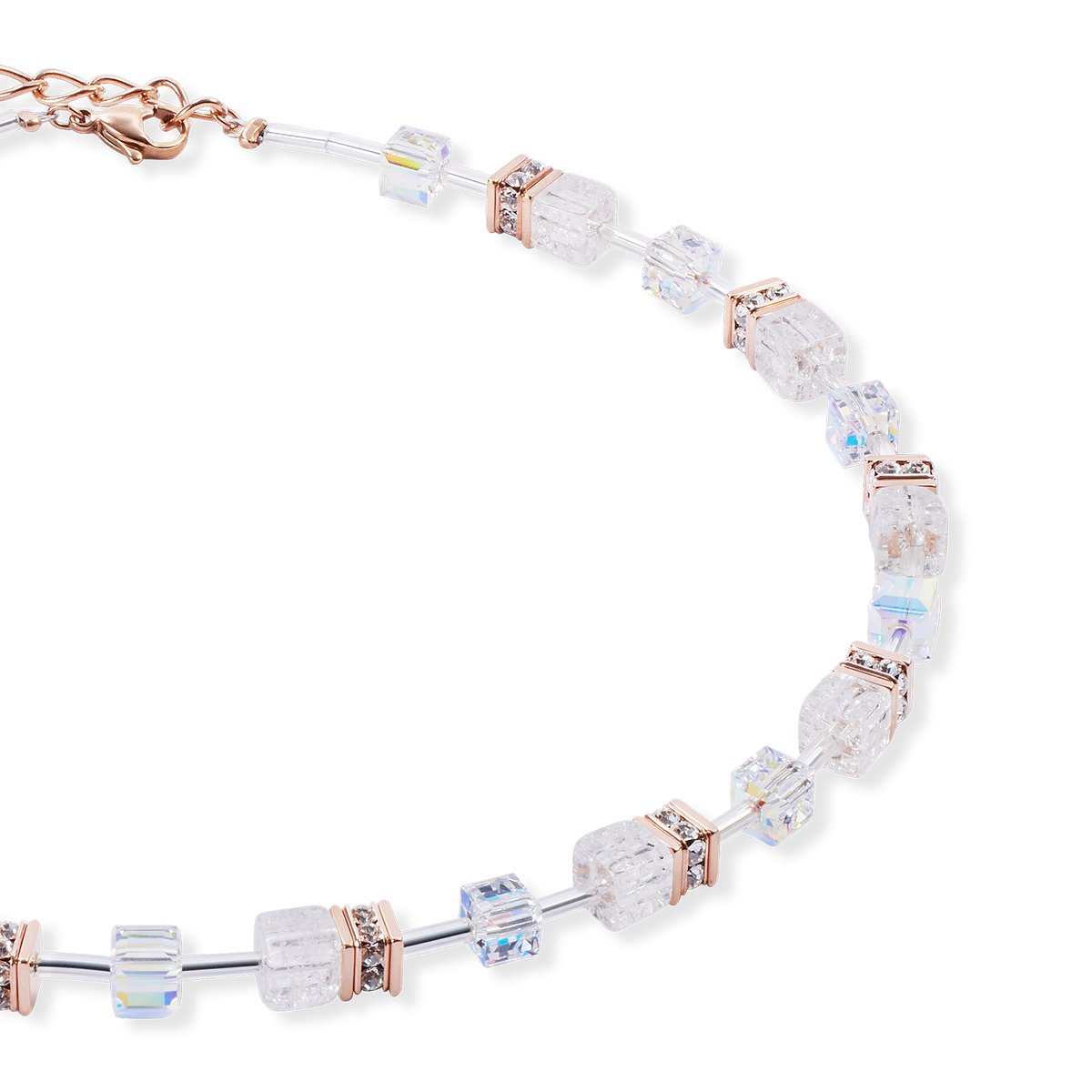 Timeless elegance with natural energy — the GeoCUBE® Iconic Nature necklace in rose gold and white combines the gentle warmth of stainless steel in rose gold with the clear beauty of rock crystal. For centuries, rock crystal has been regarded as a stone of clarity and harmony — it is said to calm the mind, strengthen inner balance and provide positive energy. The iconic GeoCUBE® elements lend this piece of jewellery a modern lightness, while the radiant white of the crystal harmonises perfectly with the elegant rose gold.