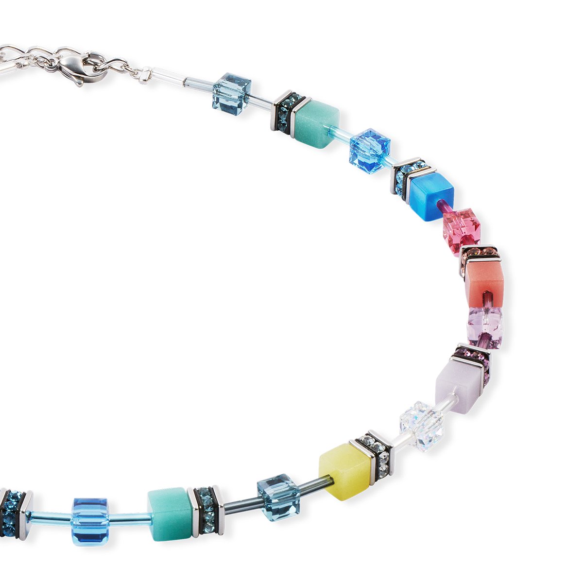 Multicolour with structure — the GeoCUBE® Iconic necklace Magic silver features vibrant GeoCUBE® elements that are perfectly accentuated by cool stainless steel in silver. Colours that shine, shapes that inspire — a piece of jewellery that adapts to any look and makes it unique.