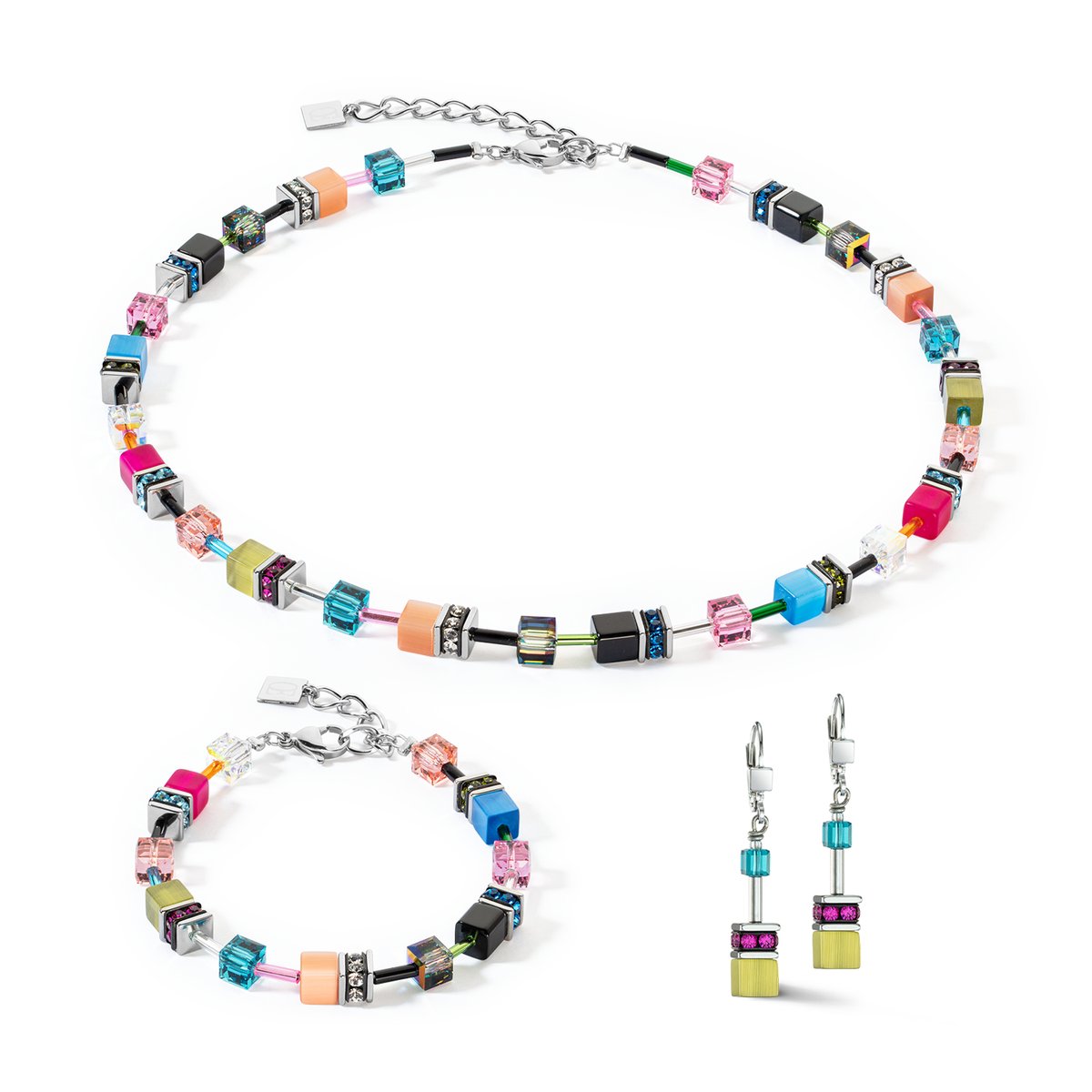 The multicoloured Fancy GEOCUBE® Iconic necklace is a very special piece of jewellery with fresh, vibrant colours that tie in with the current hyperbright trend. These bold shades are perfect for lifting the mood and brightening up dark winter’s days, or cheering you up at any time of year.