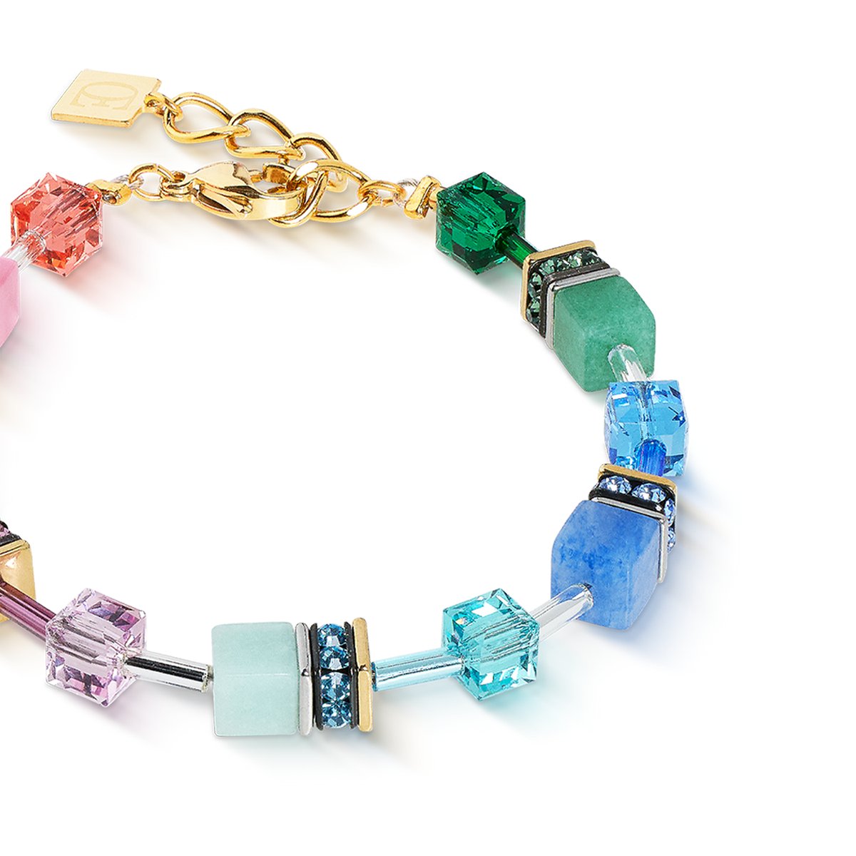 Colourful sparkle on the wrist — the Rainbow bracelet is pure joie de vivre in the form of a piece of jewellery. With genuine gemstones such as nephrite, aventurine in different colour variations, carnelian, rose quartz and amazonite, it combines the diversity of nature with the brilliant sparkle of Swarovski® crystals and fine crystals. The rainbow colours symbolise diversity and energy, while gold-plated stainless steel provides luxurious accents. Made in Germany with attention to detail, this bracelet is a cheerful eye-catcher that will brighten up any outfit.