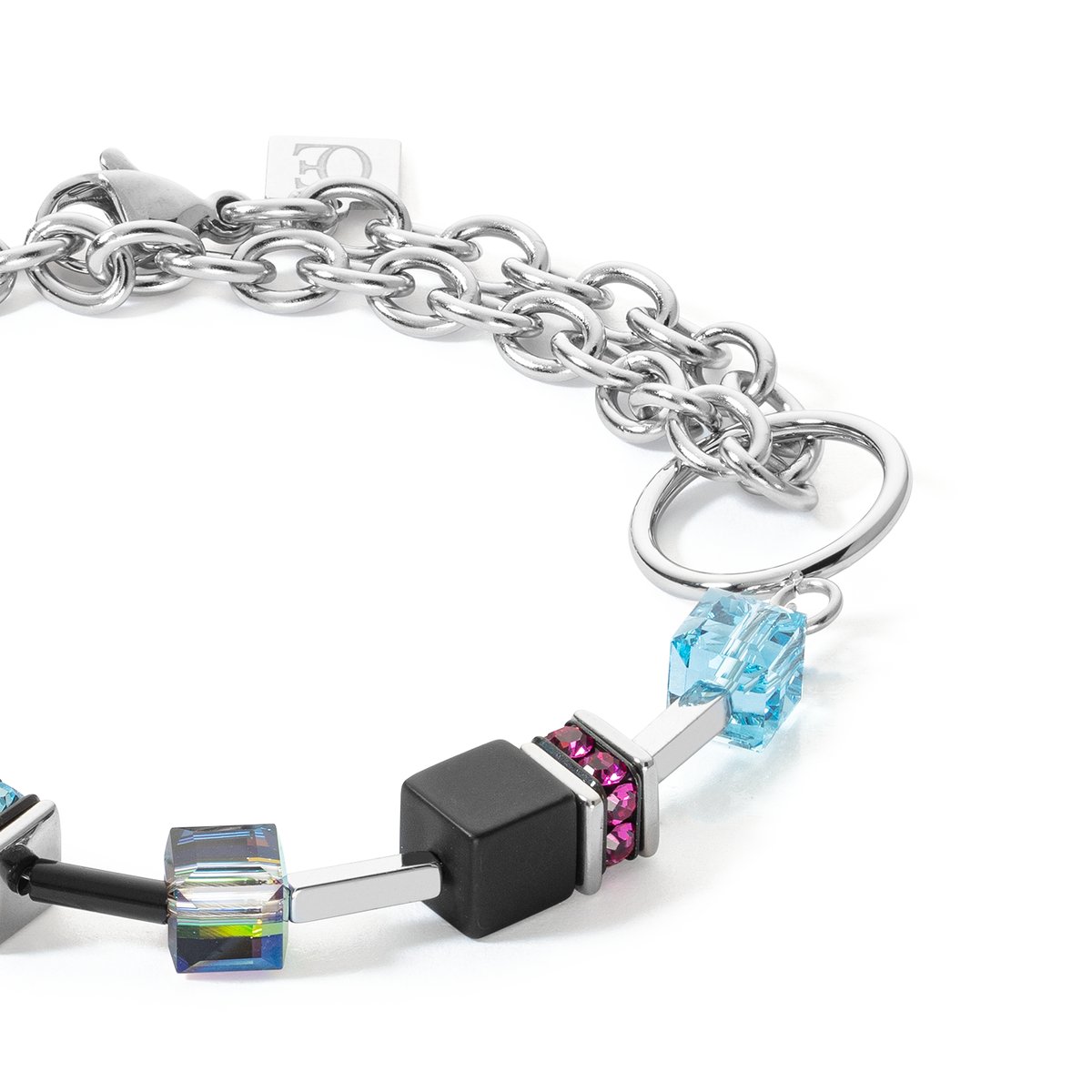 The silver and multicoloured GEOCUBE® Iconic Precious Chain bracelet will make a stylish addition to your outfit, either worn with the necklace and earrings or on its own. It complements the GEOCUBE® Iconic Precious Chain series perfectly and will elegantly round off your look.