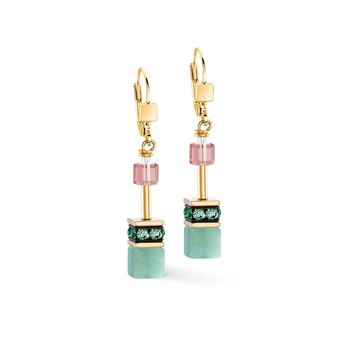 Expressive lightness — The Art Nouveau earrings combine the iconic GeoCUBE® shape with the energy of gemstones: Aventurine in fresh green symbolises hope and optimism, while Swarovski® crystals and crystals provide sparkling contrasts. Gold-coloured stainless steel provides elegant warmth and emphasises the clear, elegant shape. Handmade in Germany, these earrings combine symbolic power with stylish modernity — a subtle but meaningful colour accent.