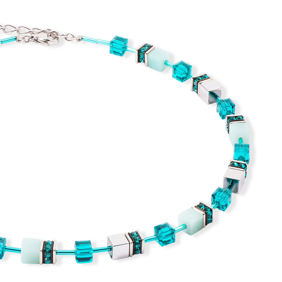 Fresh, elegant, with a natural look — the GeoCUBE® Iconic Precious necklace silver-green combines gently shimmering amazonite with sparkling Swarovski® crystals. The calming green tones lend the piece of jewellery a harmonious lightness, while the silver-coloured stainless steel design creates a modern, clean look. Perfect for anyone who wants to combine timeless elegance with a touch of nature.