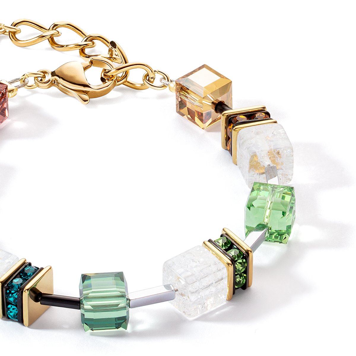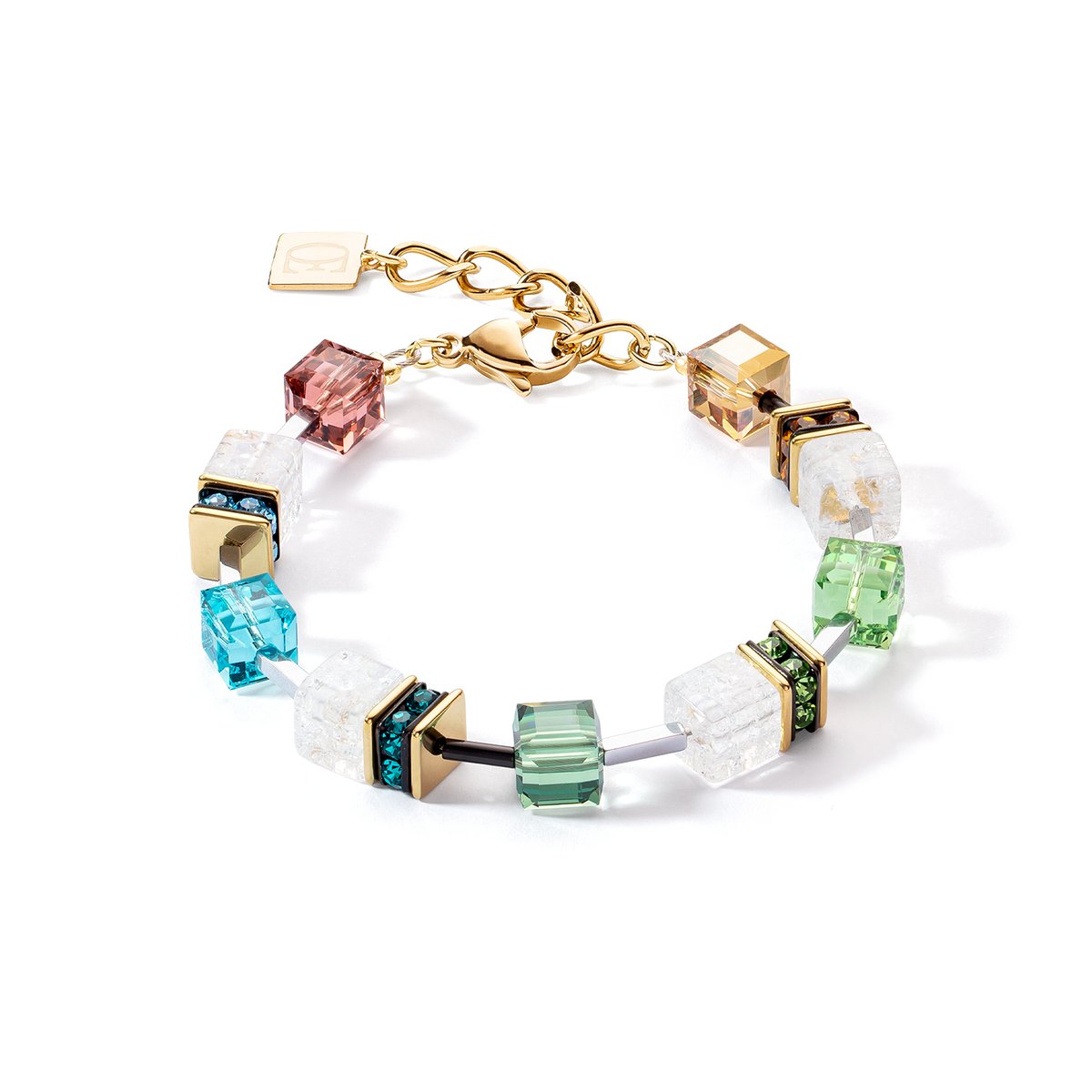 This GeoCUBE® Iconic bracelet steals the show with cracked rock crystal combined with coloured Swarovski® crystals. This statement piece with 8 × 8 mm cubes is lovingly handcrafted at our workshop.