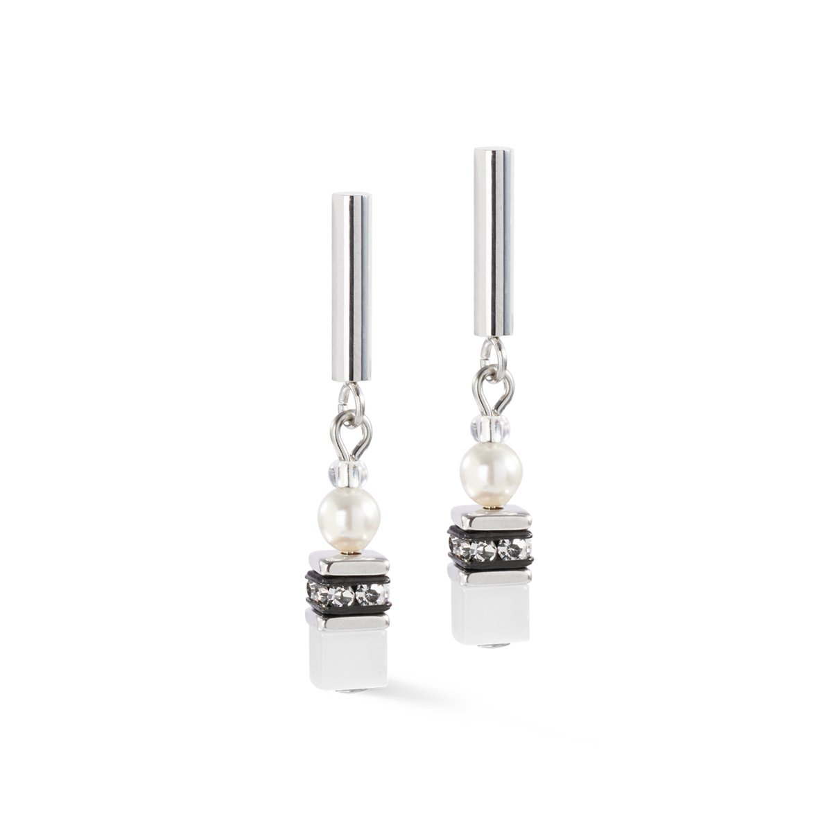 Minimalist but with a wow effect — the GeoCUBE® Mini Fusion Pearls earrings silver and white combine the perfect roundness of Crystal Pearls by Swarovski® with the iconic GeoCUBE® elements. Shimmering stainless steel in silver creates a modern, clean look, while the mini design makes these earrings a subtle but sophisticated highlight.
