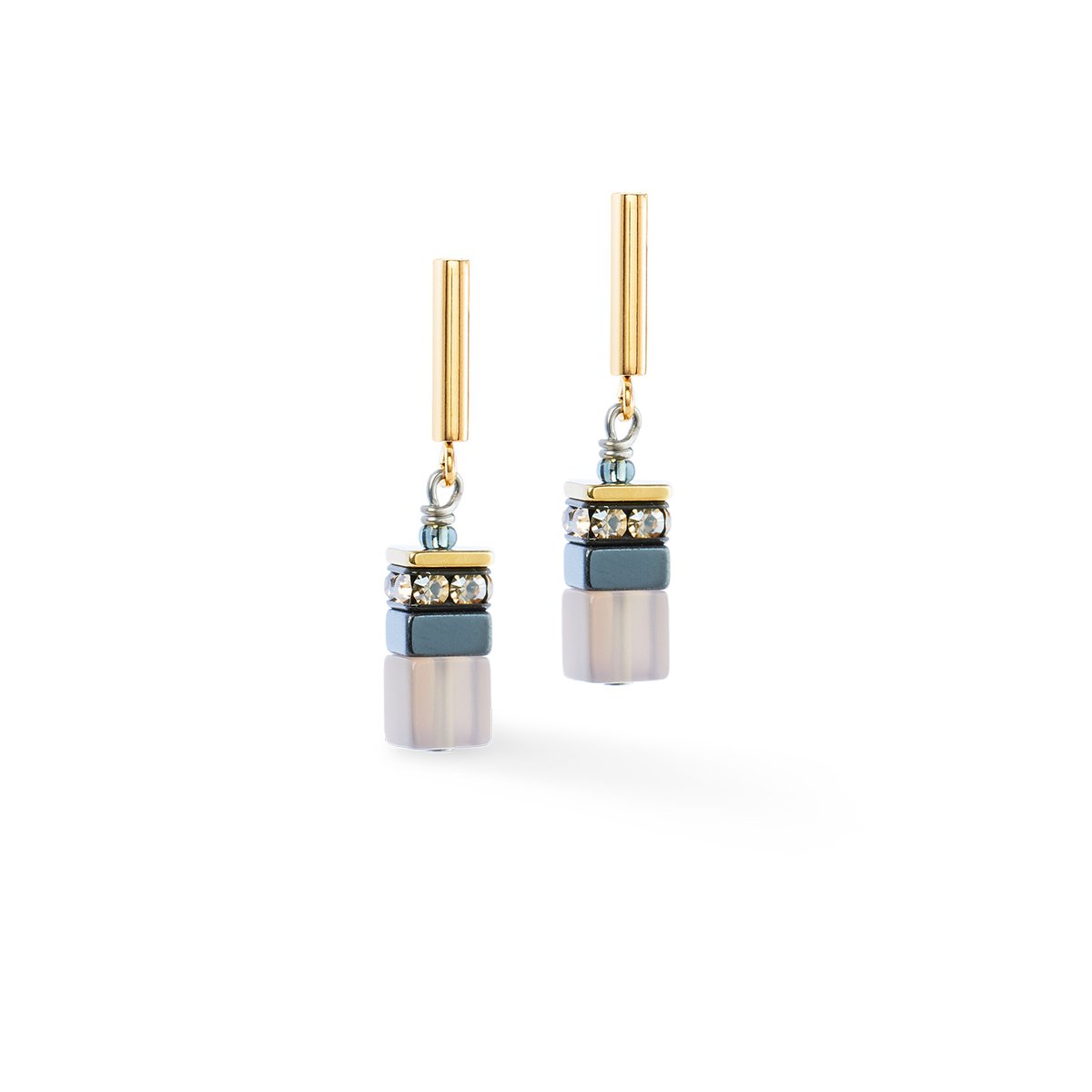 The Stone Whisper earrings pick up on the collection’s calm, natural play of colours. Polished agate, sparkling crystals and shimmering metallic haematite merge to create a clear, stylish design. Gold-coloured stainless steel provides a warm contrast — discreet, modern and perfectly coordinated with the necklace and bracelet.