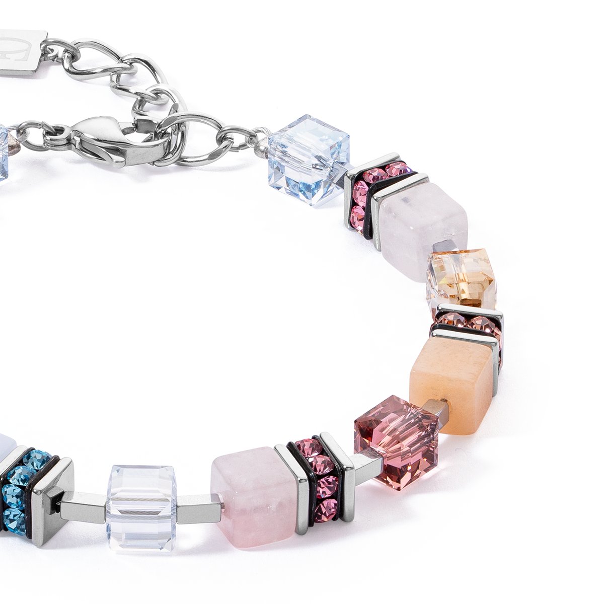 This GeoCUBE® Precious statement bracelet in silver pastel stylishly complements the look with a necklace or earrings.