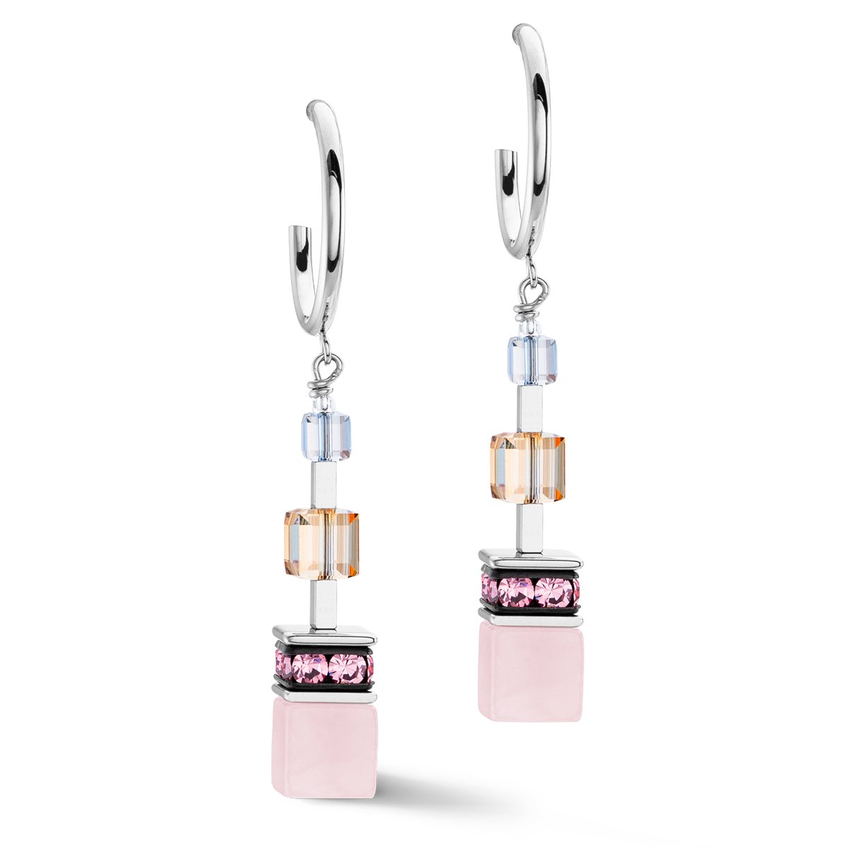 These earrings, which match the GeoCUBE® Precious statement necklace in silver pastel, combine the classic GeoCUBE® design with the current hoop earring trend to create a fashionable statement.