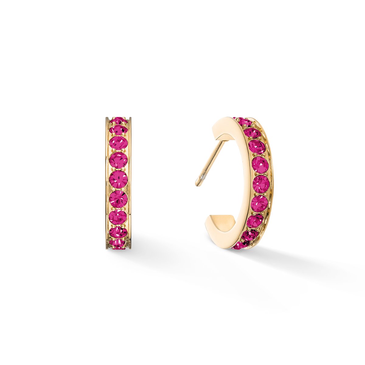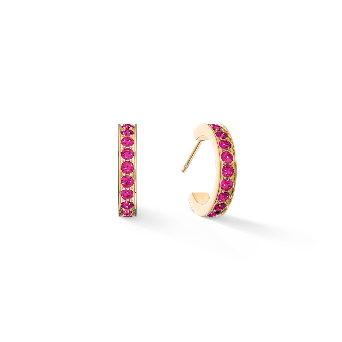 Our timeless hoop earrings are immensely popular. Set with sparkling crystals in vibrant pink. Perfect for everyday wear or the earring stacking trend. Matching bangle and rings available.
