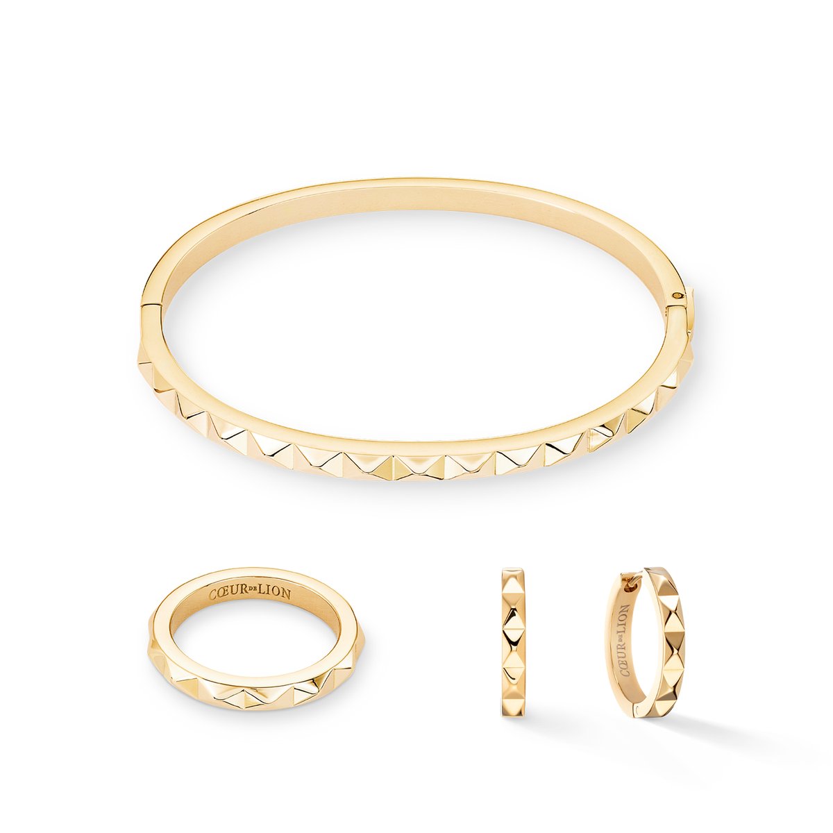 Discover our new essentials in gold — in a trendy stud or spike design. The hoop earrings are perfect for everyday wear or for trendy earring stacking. Combine these hoop earrings with your other COEUR DE LION jewellery pieces to create an exciting new look time and time again. Matching bracelets and rings in the same design.