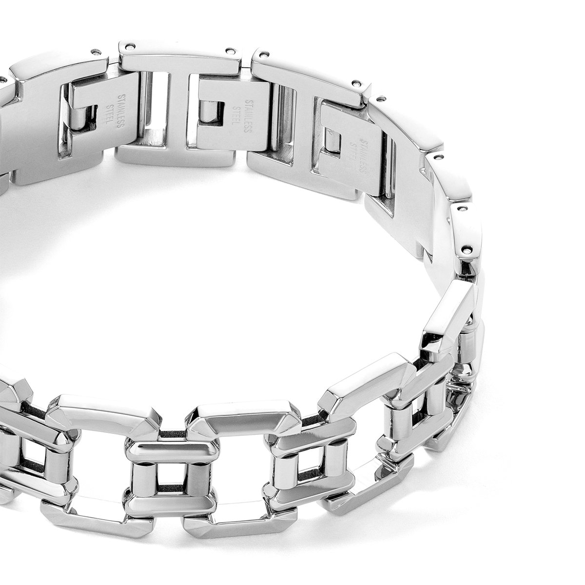 Clear shapes, perfect proportions and faceted edges give this elegant COEUR DE LION bracelet its own distinctive character. The bold links have been designed to echo the shape of the new Iconic Cube Watch series. Available in the colours gold and silver.
