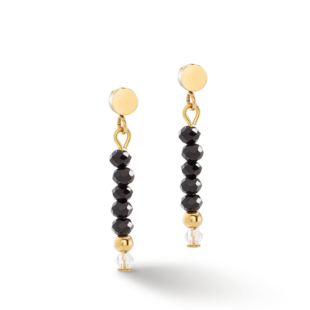 Little Twinkle earrings gold and black — understated elegance for every day The Little Twinkle earrings gold and black perfectly complement the necklace of the same name and are the ideal choice for a subtle yet stylish look. Their simple design in elegant gold and black blends harmoniously into any outfit and can be worn in a variety of ways both in everyday life and in the evening. The subtle sparkling elements add a touch of glamour without being overpowering — just right for an elegant appearance on any occasion.