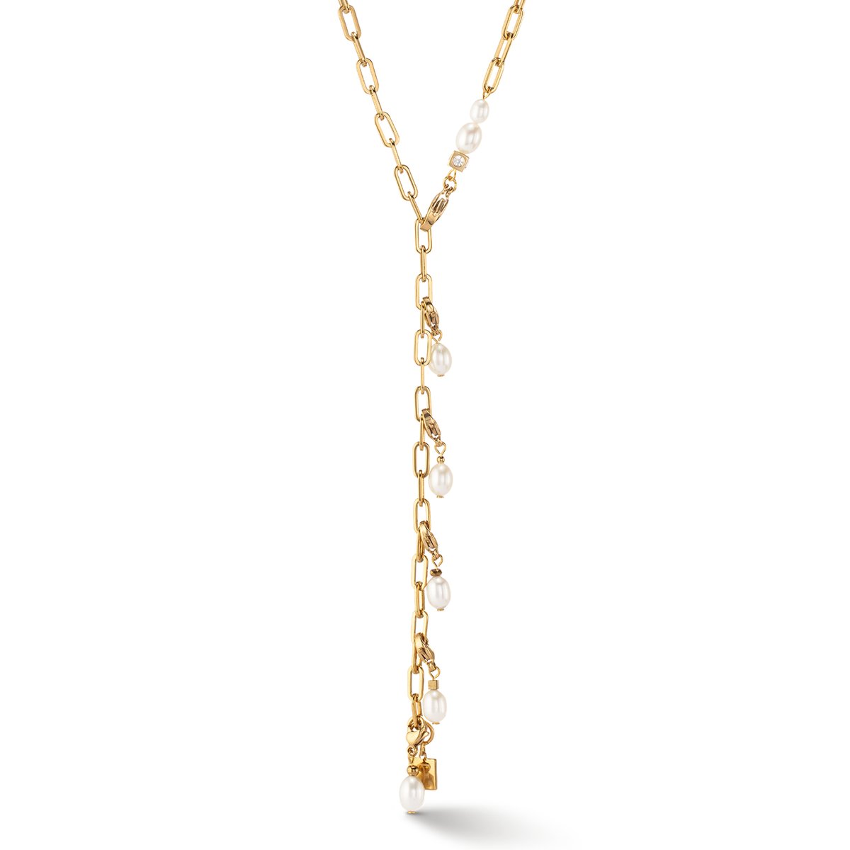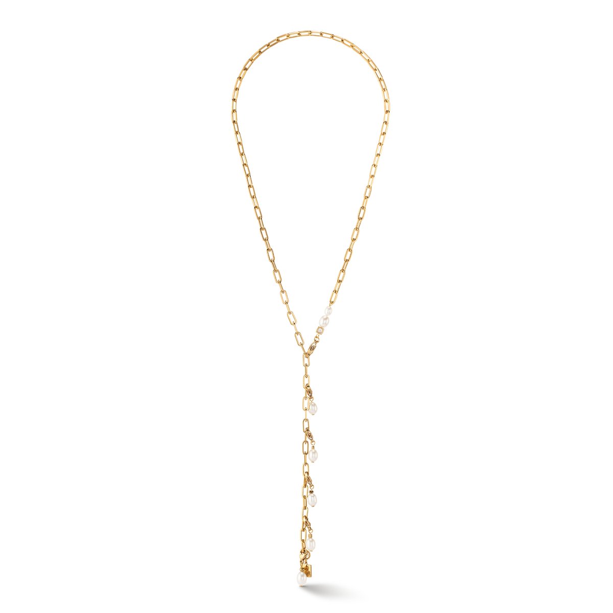 This sophisticated multiwear necklace in gold features genuine freshwater pearls and can be worn in all sorts of different ways, giving you the freedom to express yourself. What makes this design so special is that the pretty, detachable charms can be attached to any part of the link chain on the necklace, bracelet and pendant earrings. This gives you endless mix-and-match possibilities with almost any piece of jewellery. If thats not enough, you can also add the Harmony slider necklace worn short with delicate freshwater pearls and intense malachite.