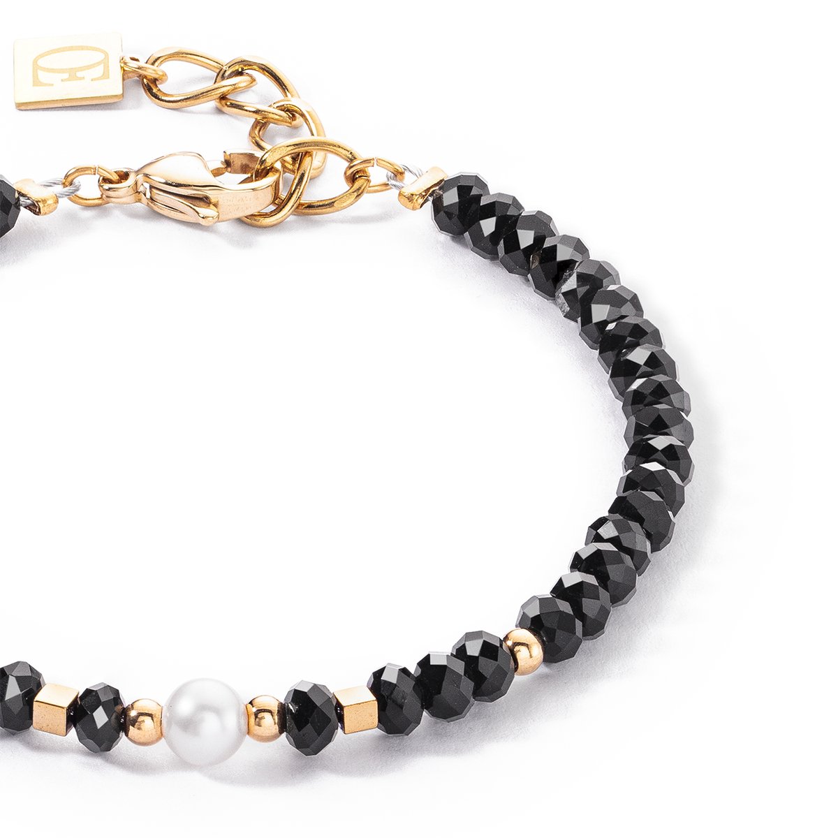 Mystic Pearl bracelet — timeless Art Deco elegance The Mystic Pearl bracelet combines classic style with modern accents. A delicate freshwater pearl in the centre, surrounded by golden elements and sparkling black crystal beads, lends this piece of jewellery an aura of sophistication. Perfect for special occasions or as a stylish highlight in everyday life — a real statement in Art Deco design.