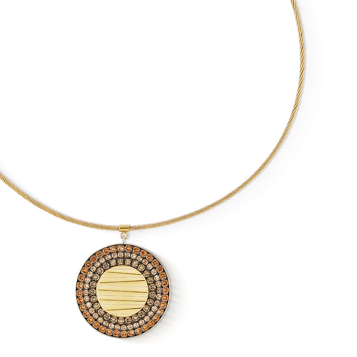 Elegance in soft tones: the Glam Waves necklace in gold and beige impresses with its understated glamour and clear design language. The central amulet with a textured surface and sparkling Swarovski® crystals adds character to the design without dominating it. The gold-coloured stainless steel choker sits lightly on the neck and makes this necklace a versatile companion — discreet, but never arbitrary. Particularly beautiful in combination with the Essentials Wave jewellery pieces in a gold look.