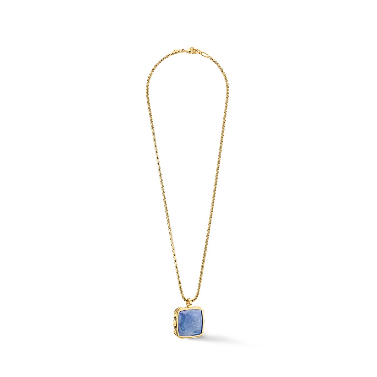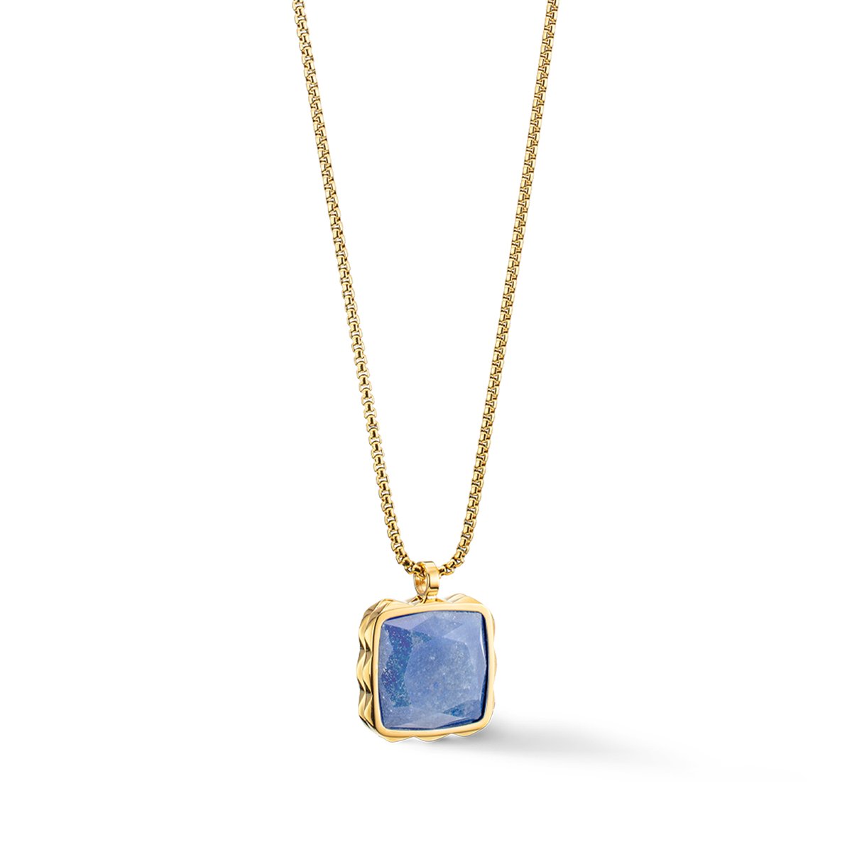 Discover the stunning genuine stone amulets from our Essentials collection. Necklace in gold-blue with a faceted blue aventurine, setting in a trendy stud or spike design. Matching stud earrings and ring available.