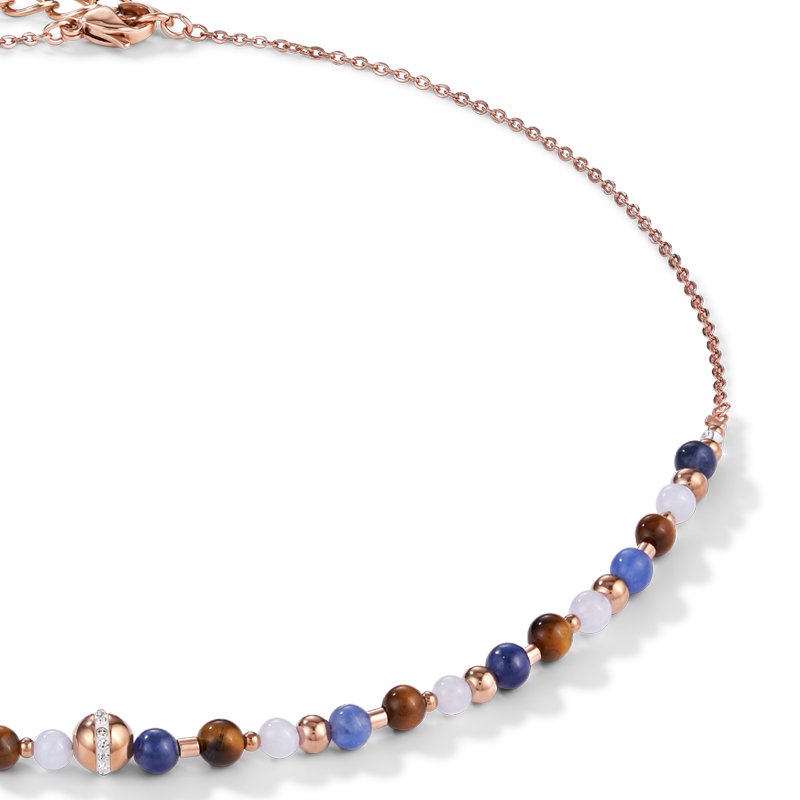 A beauty that will warm your heart: a fine necklace with real stones such as chalcedony and sodalite.