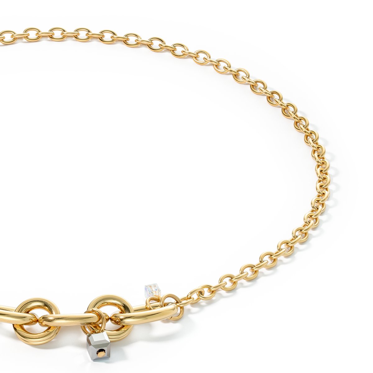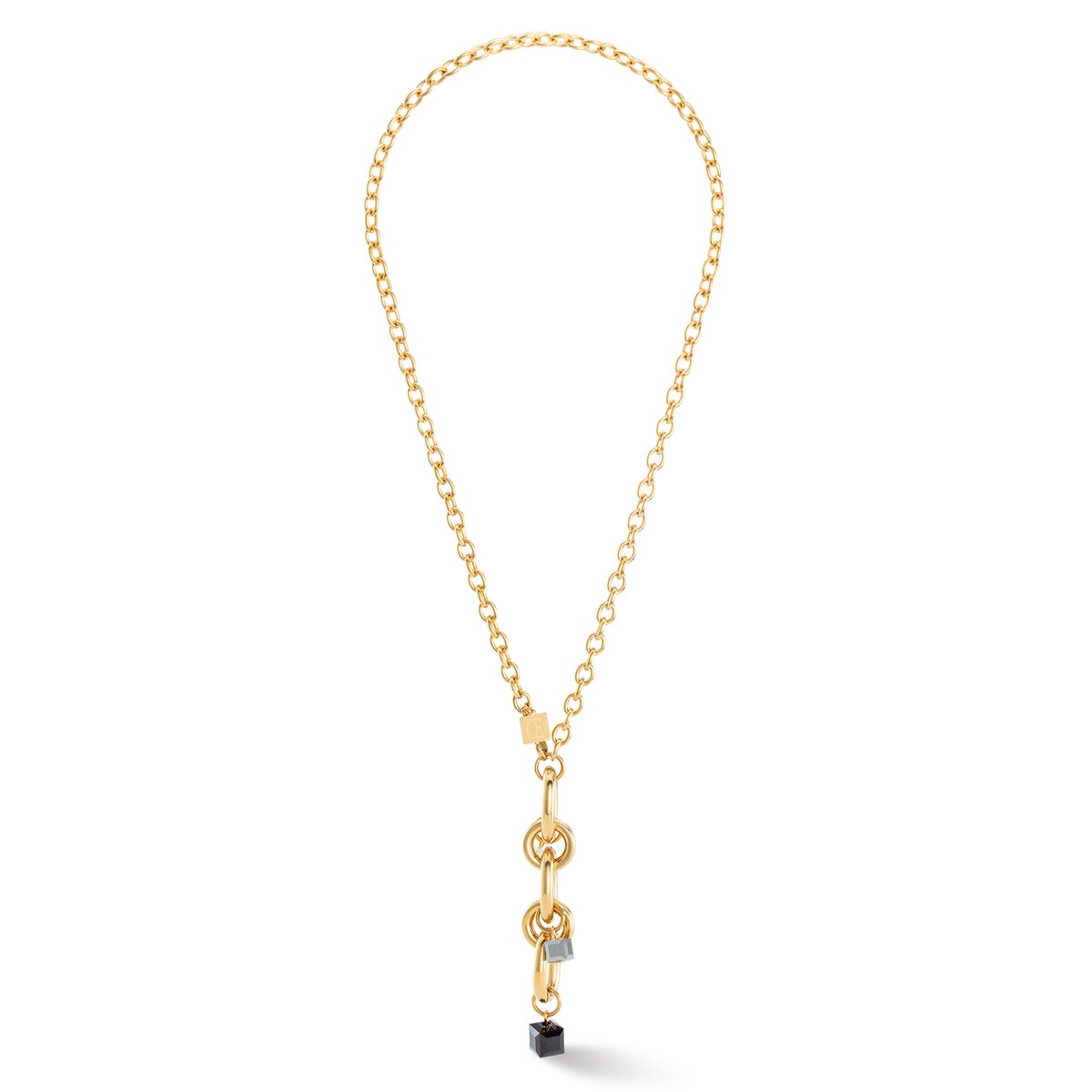 Discover the breathtaking Chunky Chain necklace in gold and black – a real eye-catcher with a combination of oval chain and chunky chain as a Y-shaped pendant. The chunky chain is finished with fascinating Swarovski® crystal pendants. This necklace takes minimalism to the max and is not just suitable for the festive period.