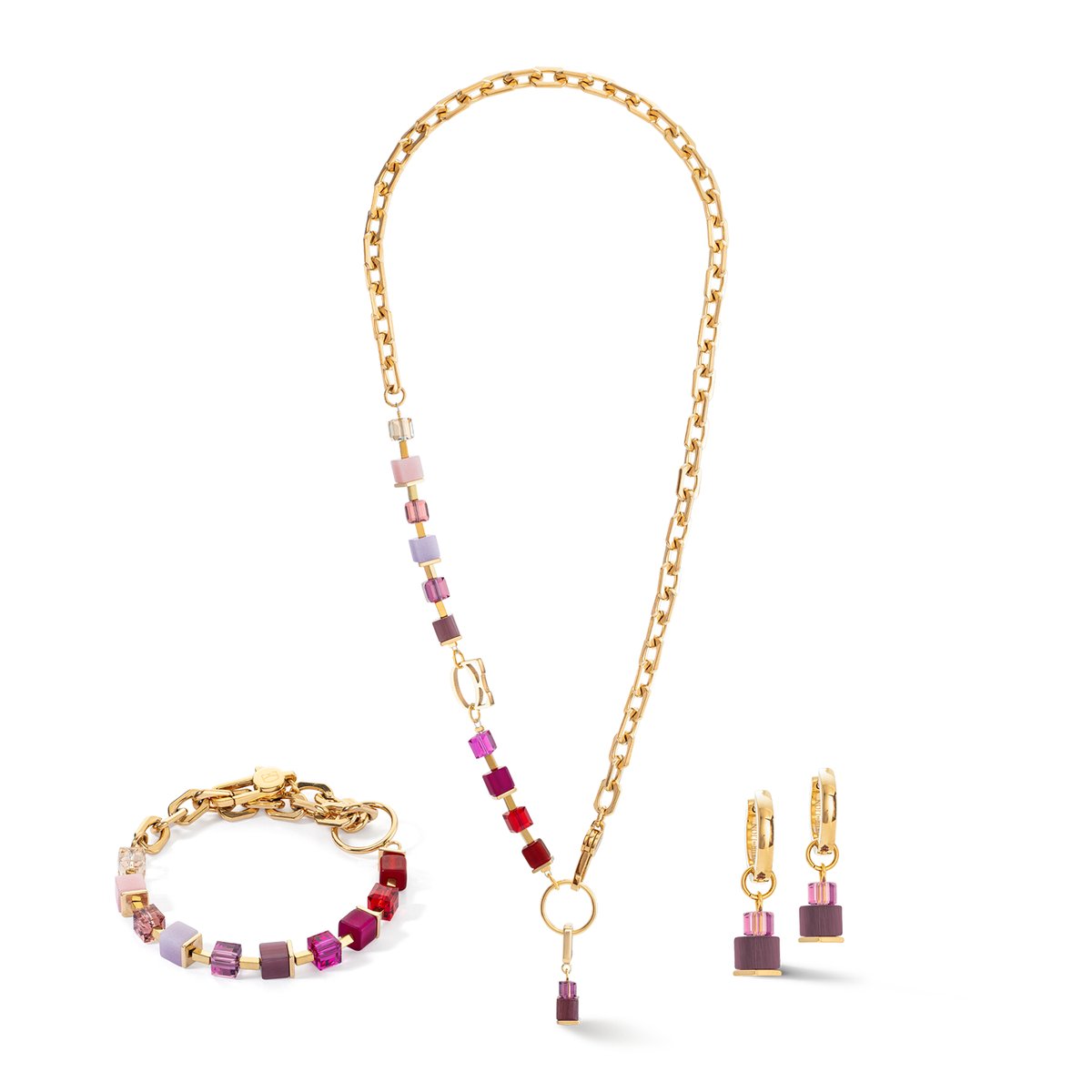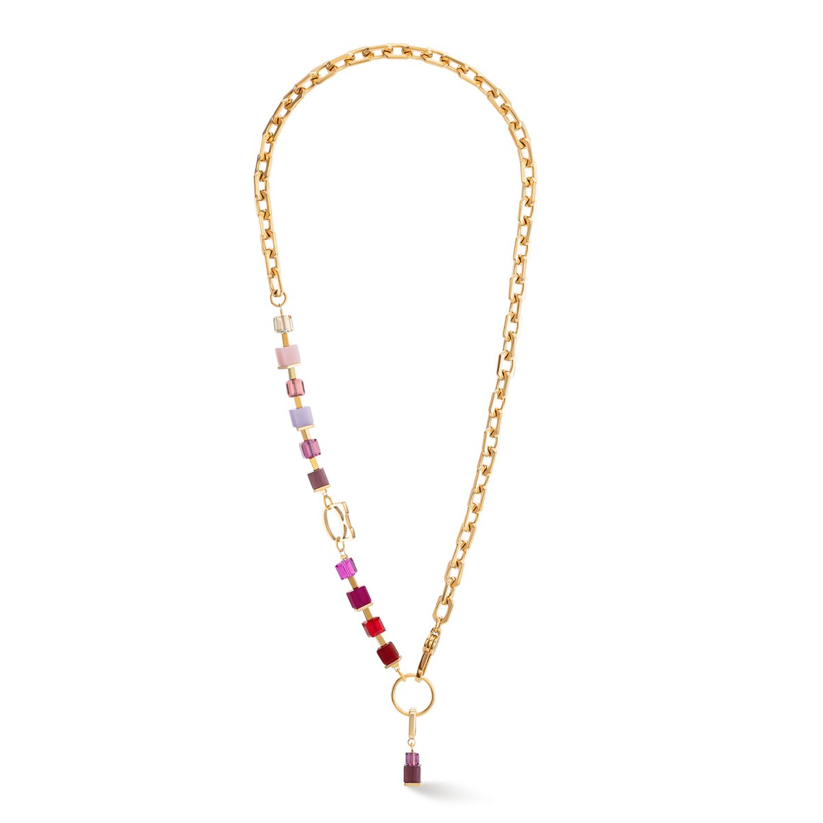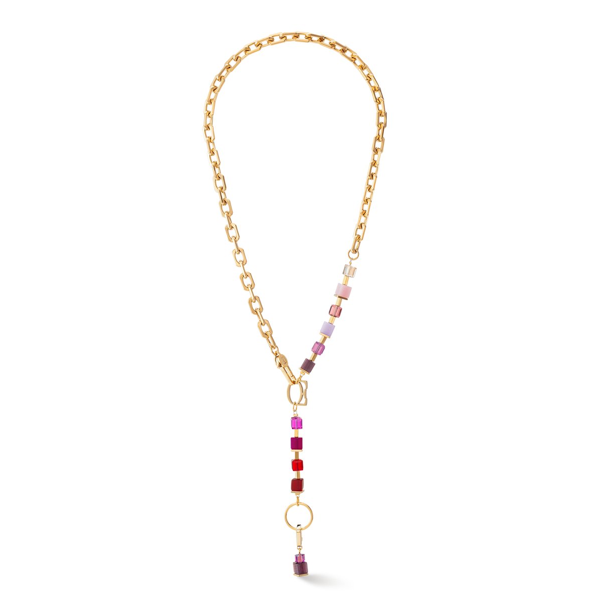 Cube Fusion Charm Gold-Red Necklace — Stylish versatility meets vibrant colours Discover a new, exciting cube look in a harmonious combination of warm red tones and radiant golden stainless steel with the Cube Fusion Charm Gold-Red Necklace. This necklace combines innovative design ideas with the flexibility you love — it offers numerous wearing options that set no limits to your creativity. The necklace can be customised: Hang it as you wish in the chain links or in the elegant OE logo element. The detachable charm gives you additional styling options. Wear the chain short, long or as a fashionable Y version — the choice is yours. If you like it more eye-catching, you can add the matching bracelet to the necklace to create an impressive XXL version. With the Cube Fusion Charm Gold-Red necklace, you can add a personal touch to your look and create colourful accents that emphasise your individuality. Discover the countless possibilities and let your creativity run wild.