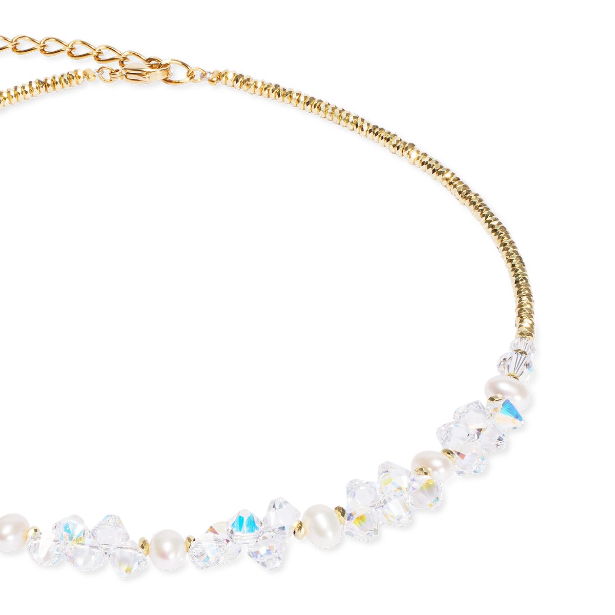 Shimmering, playful, simply irresistible — the Dancing Crystals & Pearls gold necklace brings elegance in motion! Sparkling Swarovski crystals dance with precious freshwater pearls and catch the light with every movement. A touch of luxury that will make your outfit shine — whether for a chic dinner or simply because you fancy a touch of glamour!