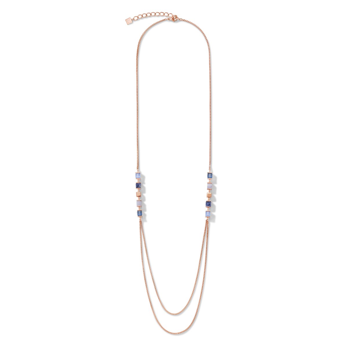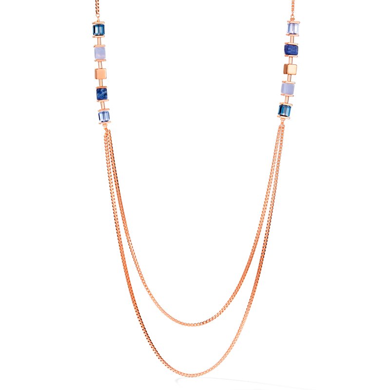A beauty that will warm your heart: a sophisticated necklace from the GeoCUBE® collection with real stones such as deep-blue sodalite and light-blue chalcedony. A particularly elegant look when layered with the matching short necklace.