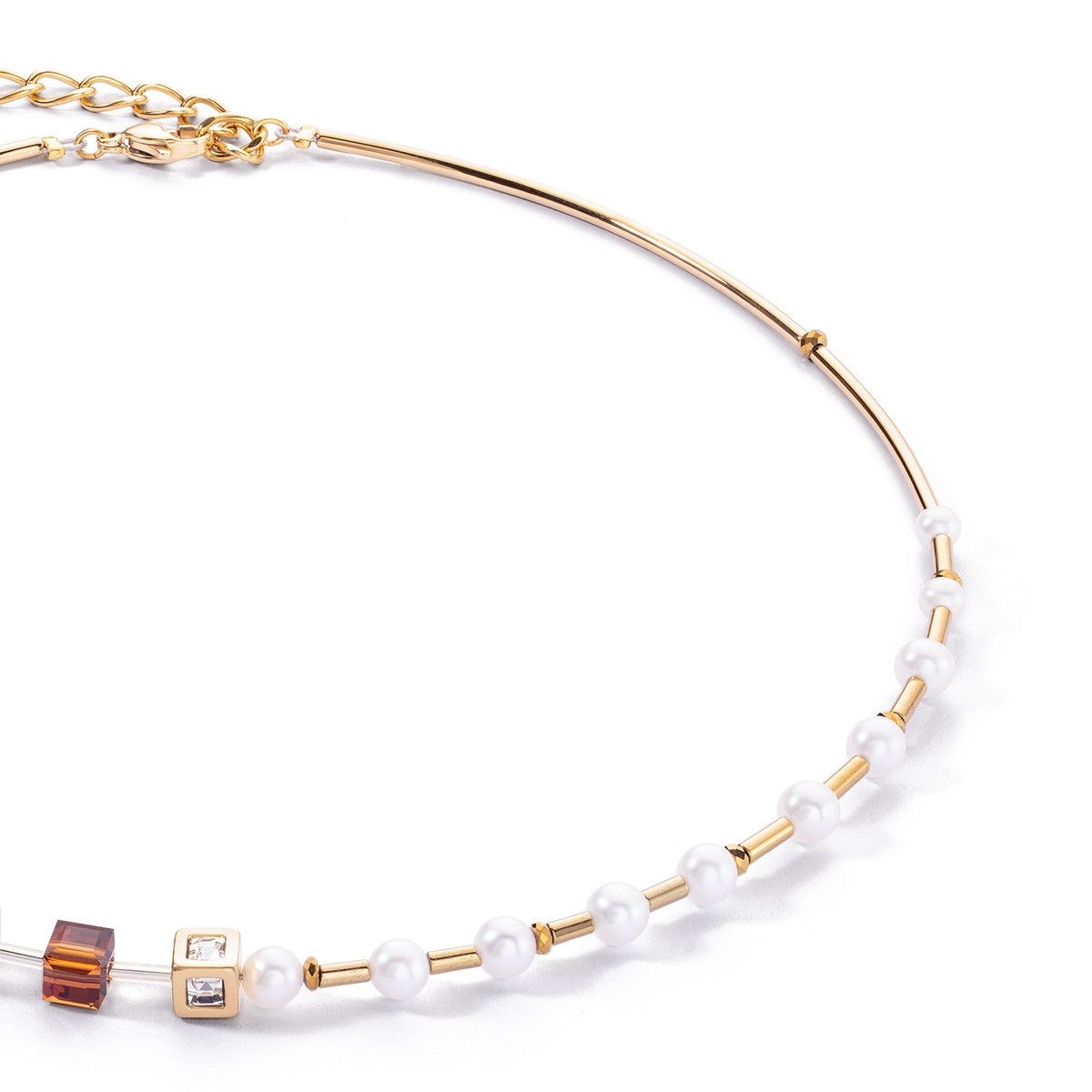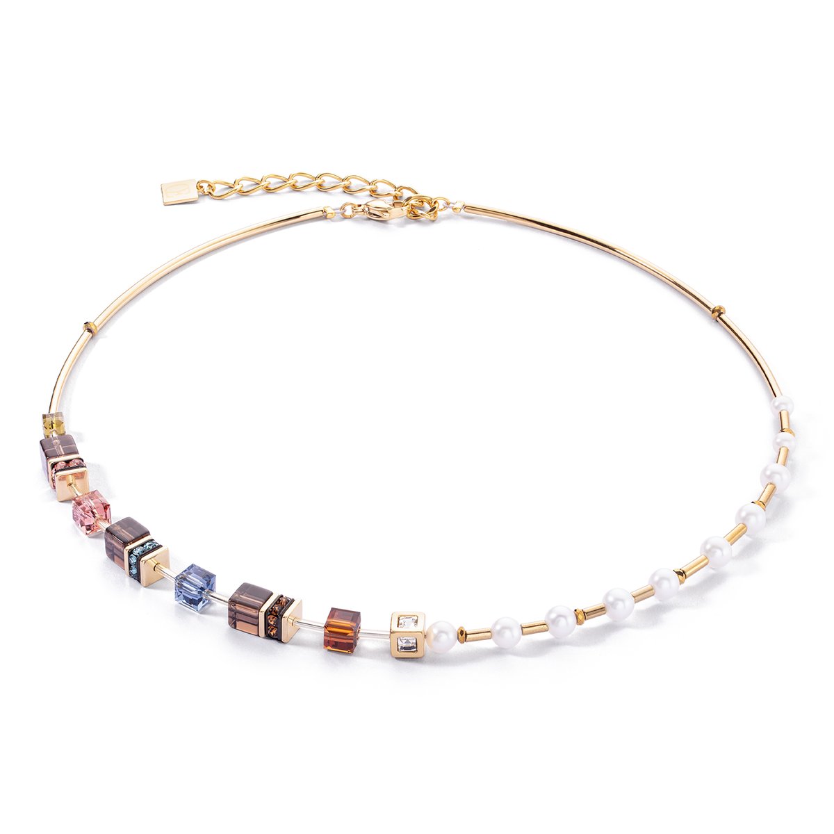 The asymmetrical look of the GeoCUBE® Fusion Precious Pearl Mix Gold-Autumn necklace makes it a real eye-catcher. It adds a touch of individuality and style to your outfit. The popular GeoCUBES® in autumnal multicolour give the necklace a modern and trendy look. The use of smoky quartz brings a natural and earthy note to the piece of jewellery. The genuine freshwater pearls add a subtle elegance and ensure a harmonious transition between the individual elements.