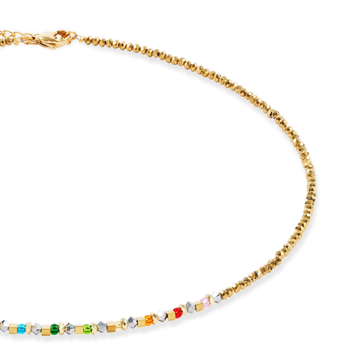 Delicate, radiant, full of colour — the Golden Whisper Rainbow necklace combines fine Swarovski® crystals with delicate glass beads in vibrant rainbow shades. Golden accents create sophisticated highlights and lend the design a warm, elegant touch. The delicate arrangement creates a modern lightness that is perfect for understated elegance with a touch of colour.