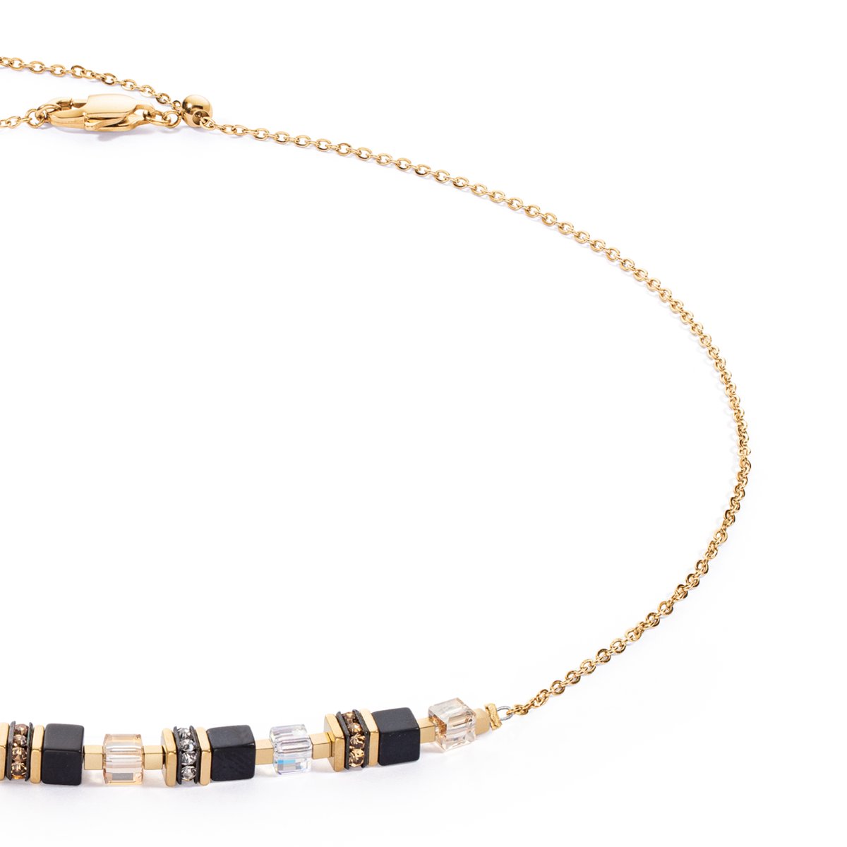 Enjoy the simple elegance of our Mini Cubes & Chain necklace in gold and black — a sophisticated piece of jewellery that enchants with its delicate design and the unique charm of the materials. This piece of jewellery combines the timeless beauty of real stone cubes, such as black onyx, with the dazzling brilliance of Swarovski crystals. The innovative sliding clasp ensures a customised fit and allows you to adjust the length of the chain as desired, ensuring optimum comfort and versatile styling options.