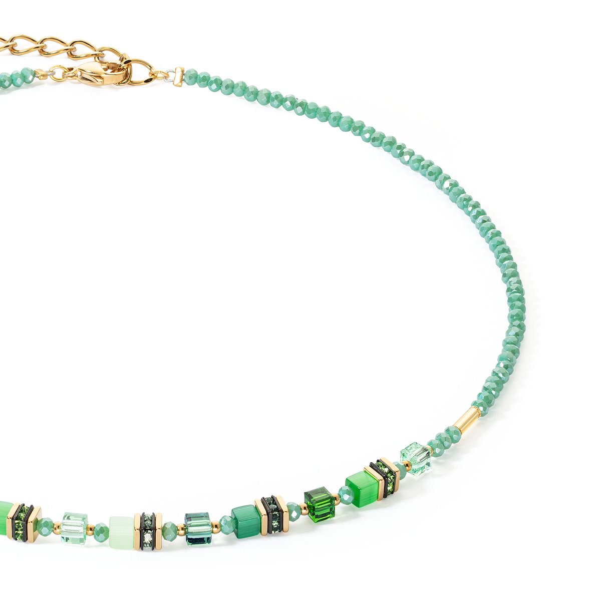 Necklace in a Mini Cubes design. Complements the latest fashions perfectly with its trendy gold and green colourway.