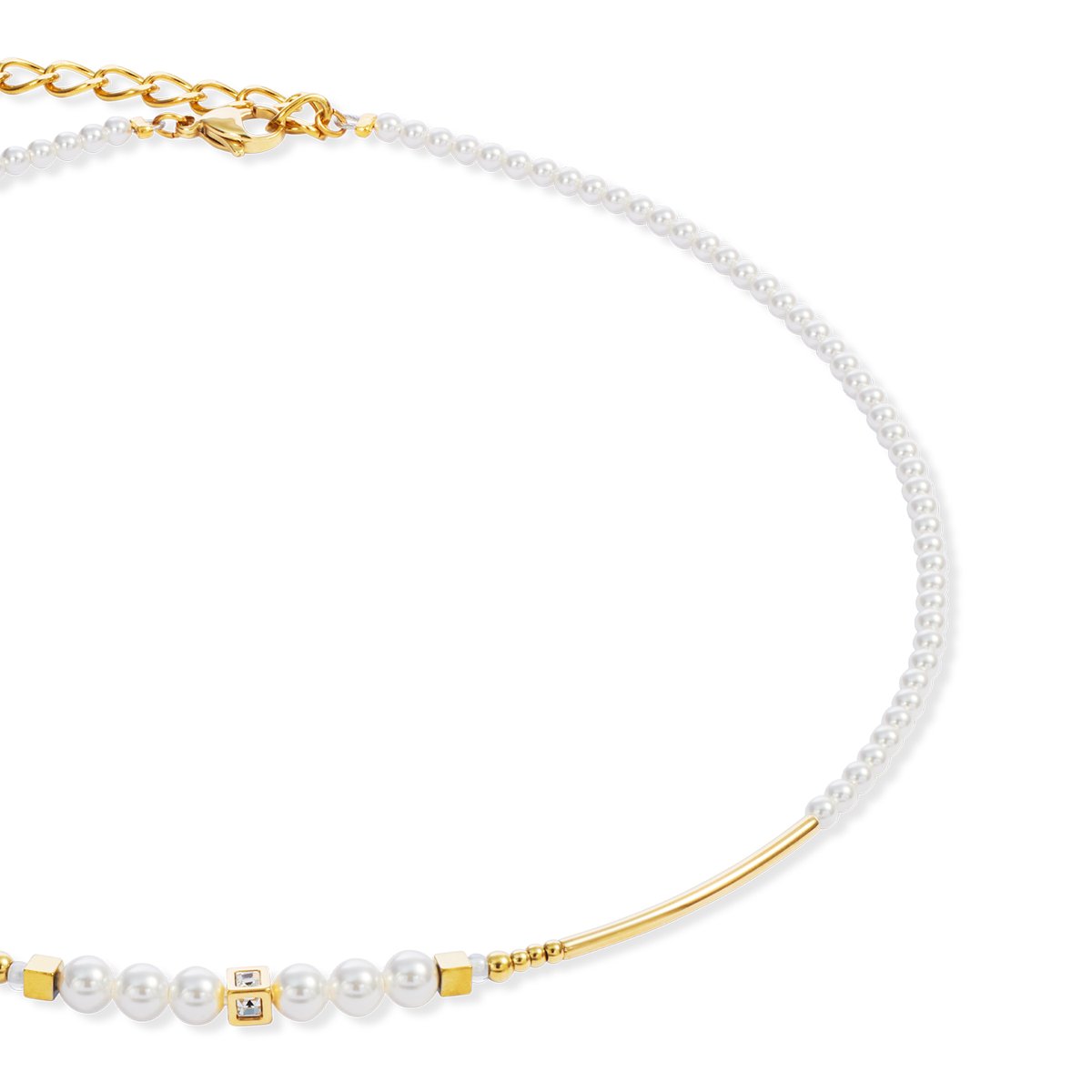 Delicate, sophisticated, with a regal shimmer — the Shimmering Princess Pearls gold and white necklace combines the gentle elegance of Crystal Pearls by Swarovski® with gleaming stainless steel in gold. The harmonious combination of shimmering white tones and luxurious accents lends the piece of jewellery a sophisticated lightness. Perfect for anyone who wants to combine classic beauty with modern design.