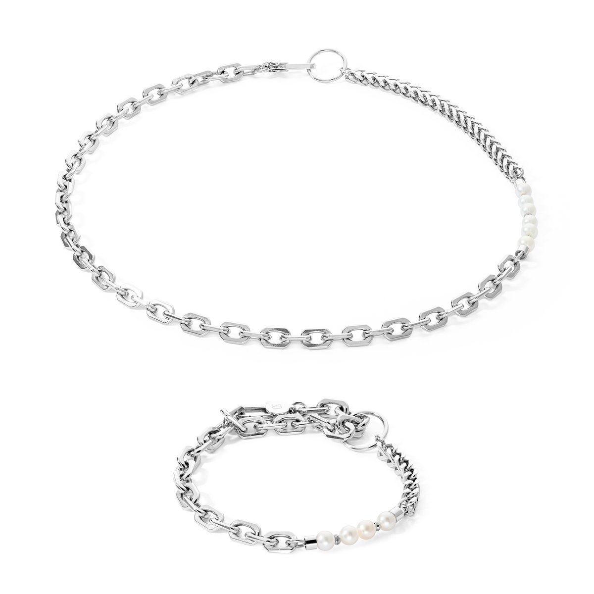 Take your style to the next level with the «Trinity» necklace from our COEUR DE LION men’s collection. This striking necklace combines a chunky stainless steel link chain with a robust stainless steel heat chain and cool crystal pearls. The «Trinity» necklace is a statement piece that impresses with its powerful design and first-class workmanship. It adds a cool, casual touch to any outfit and is perfect for both everyday wear and special occasions. For the complete look, there is the matching «Trinity» bracelet in the same dynamic style. Combine these pieces of jewellery and make a powerful statement. With the unmistakable quality and unique design of COEUR DE LION, you will stand out from the crowd in style.