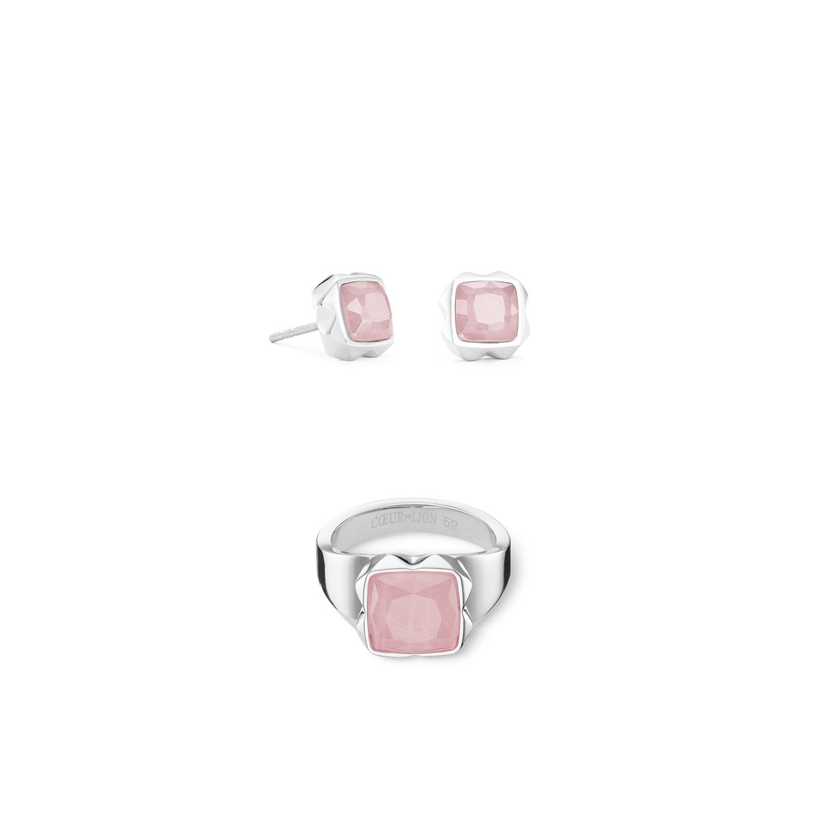 For even more combination options — but also perfect for wearing on their own — we offer other rings such as the Spikes Square Rose Quartz Silver-Pink ring from the Spikes Square line. The matching stud earrings are also available to complete the look.