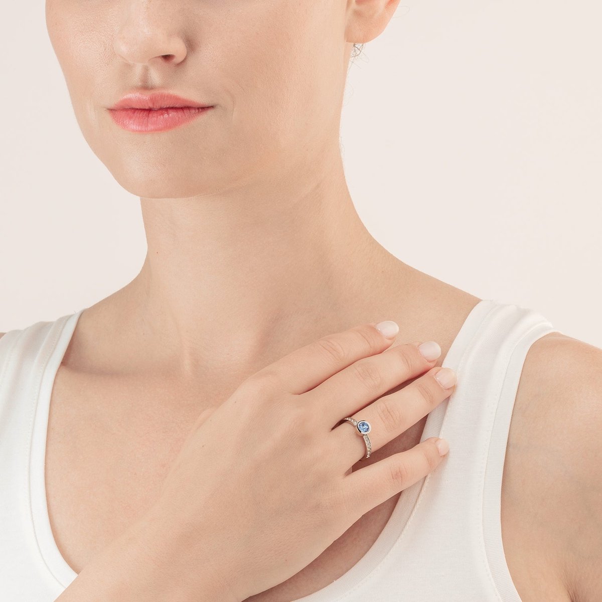 Exquisite details and the sparkling ocean-blue crystal make this design extra special. For an even more glamorous look, wear several rings from our collection on the same hand.