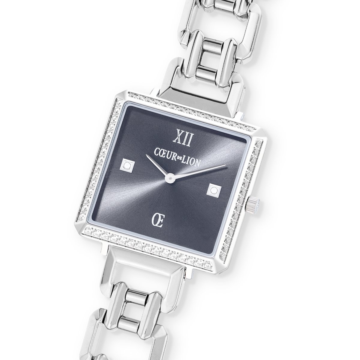 Iconic Cube Sparkling Anthracite Attraction Statement Silver watch — Timeless elegance with sparkling glamour. The Iconic Cube Sparkling Anthracite Attraction watch combines modern design with luxurious details and high-quality craftsmanship. The anthracite-coloured sunray dial gives this watch a sophisticated, contemporary aesthetic, while the iconic square setting with sparkling zirconia crystals adds a touch of glamour. This piece of jewellery is a real eye-catcher and stylishly enhances any outfit. The case of this watch is made from high-quality 316L stainless steel, measures 32 x 32 mm and has a slim case height of just 7.5 — 7.8 mm. The watch is finished with a high-quality IP coating in silver, which not only provides a luxurious look, but is also particularly durable. Inside is a first-class Japanese quartz movement, which is powered by a 1.55 V battery (running time 3 years). The silver stainless steel link bracelet with faceted metal links is not only extremely comfortable to wear, but can also be changed in an instant thanks to the clever click mechanism, allowing you to customise your look at any time. The Iconic Cube Sparkling Anthracite Attraction is more than just a watch — it is a statement that perfectly combines luxury, elegance and functionality. A stunning accessory that will turn heads both in everyday life and on special occasions.