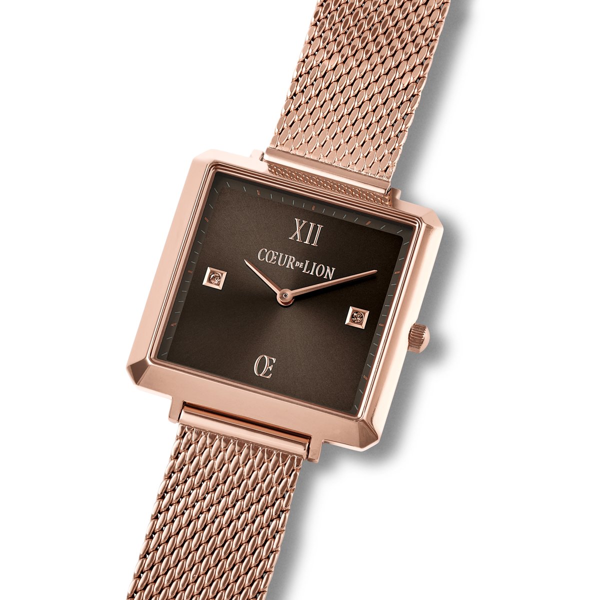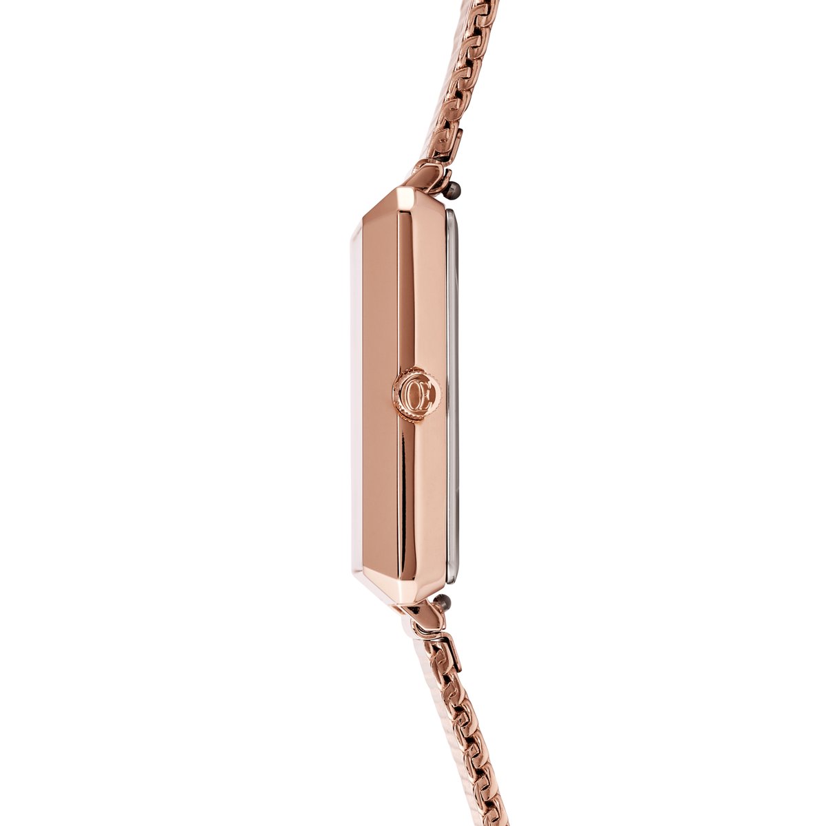 Our new iconic watch models are now also available with square casing. Inspired by our classic GeoCUBE® design, the clear shapes, perfect proportions and faceted edges lend the watch a very special character. A Milanese bracelet made from rose gold stainless steel, high-quality case and dark dial make it an elegant finishing touch for your outfit. The watch also looks fabulous worn with our jewellery.