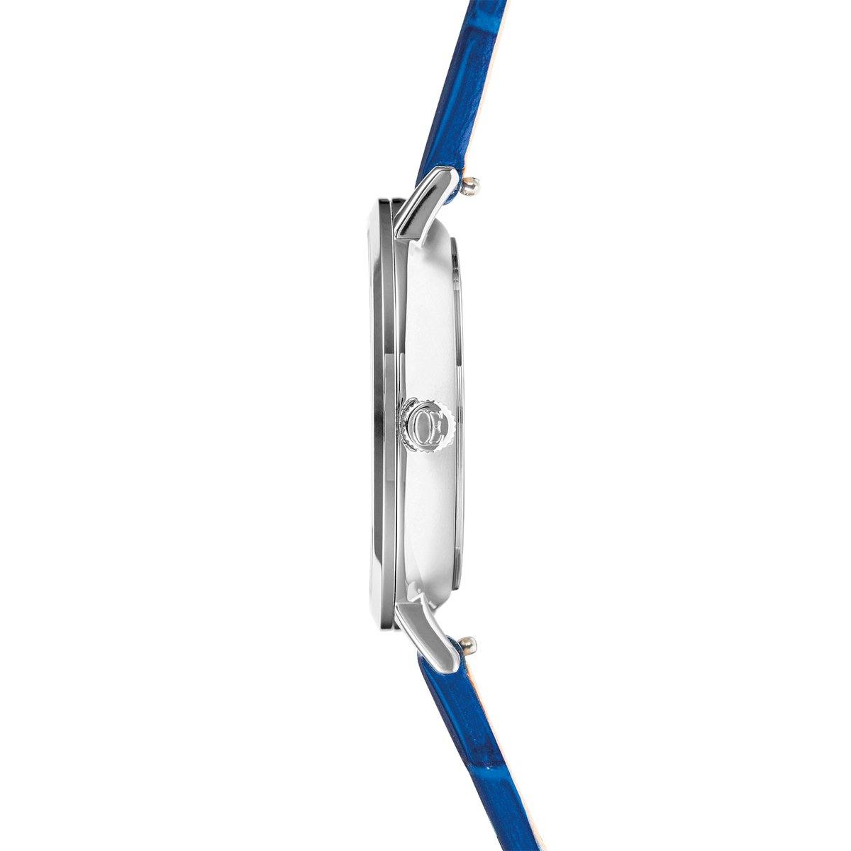 A watch design for very special moments. The round Sparkling Sunray watch with leather strap in Royal Blue. The SPARKLING WATCH with a silver stainless steel case and a sunray dial in royal blue, framed tone-on-tone by carefully placed deep blue crystals, embodies timeless elegance and a touch of mysticism. The crocodile-look leather strap lends the watch a luxurious touch with its sophisticated texture and offers maximum comfort. The watch has a high-quality 316L stainless steel case — 34mm and a case height of only 7.5 — 7.8 mm, a first-class Japanese quartz movement with 1.55 V battery (running time 3 years). The strap can be changed in next to no time thanks to the click mechanism.